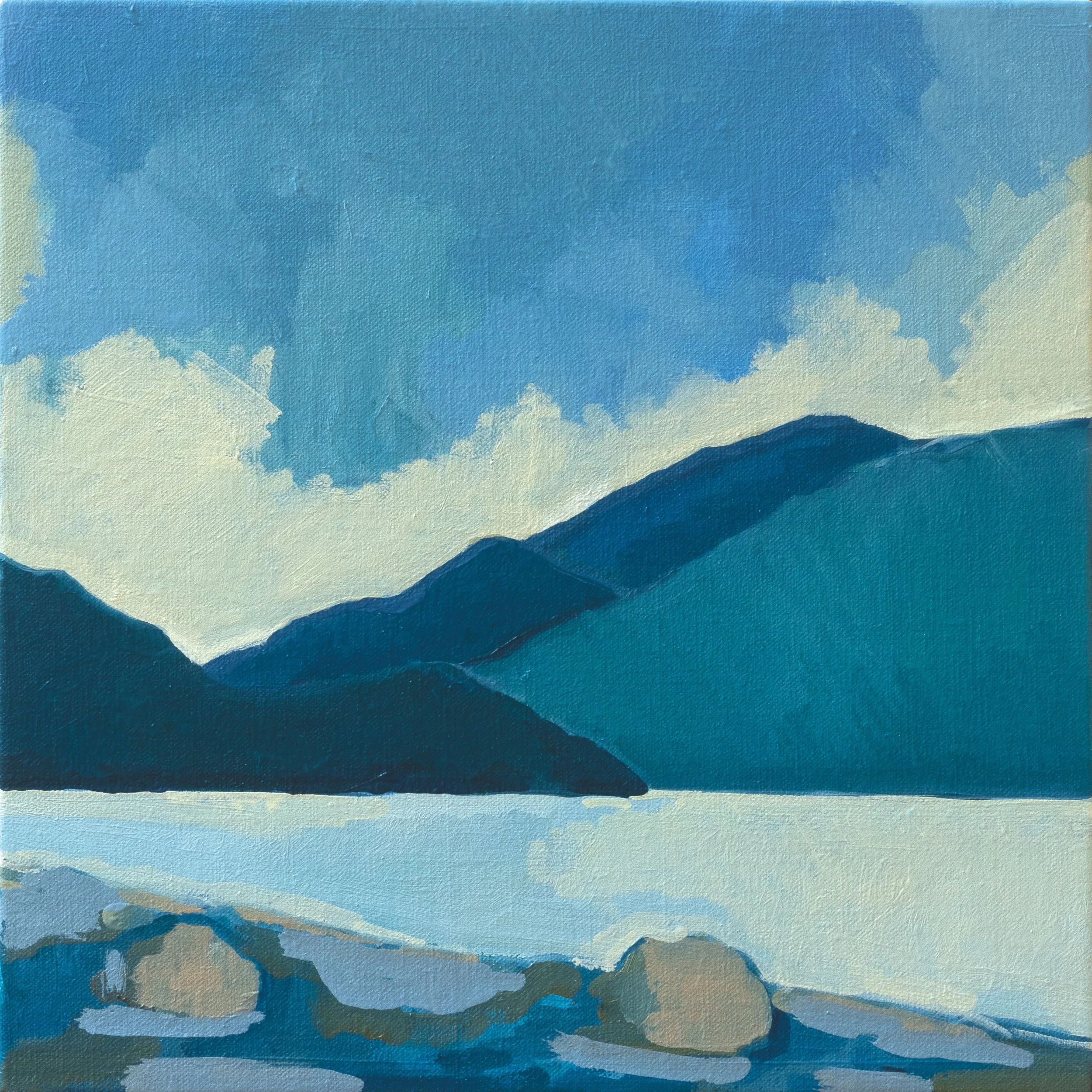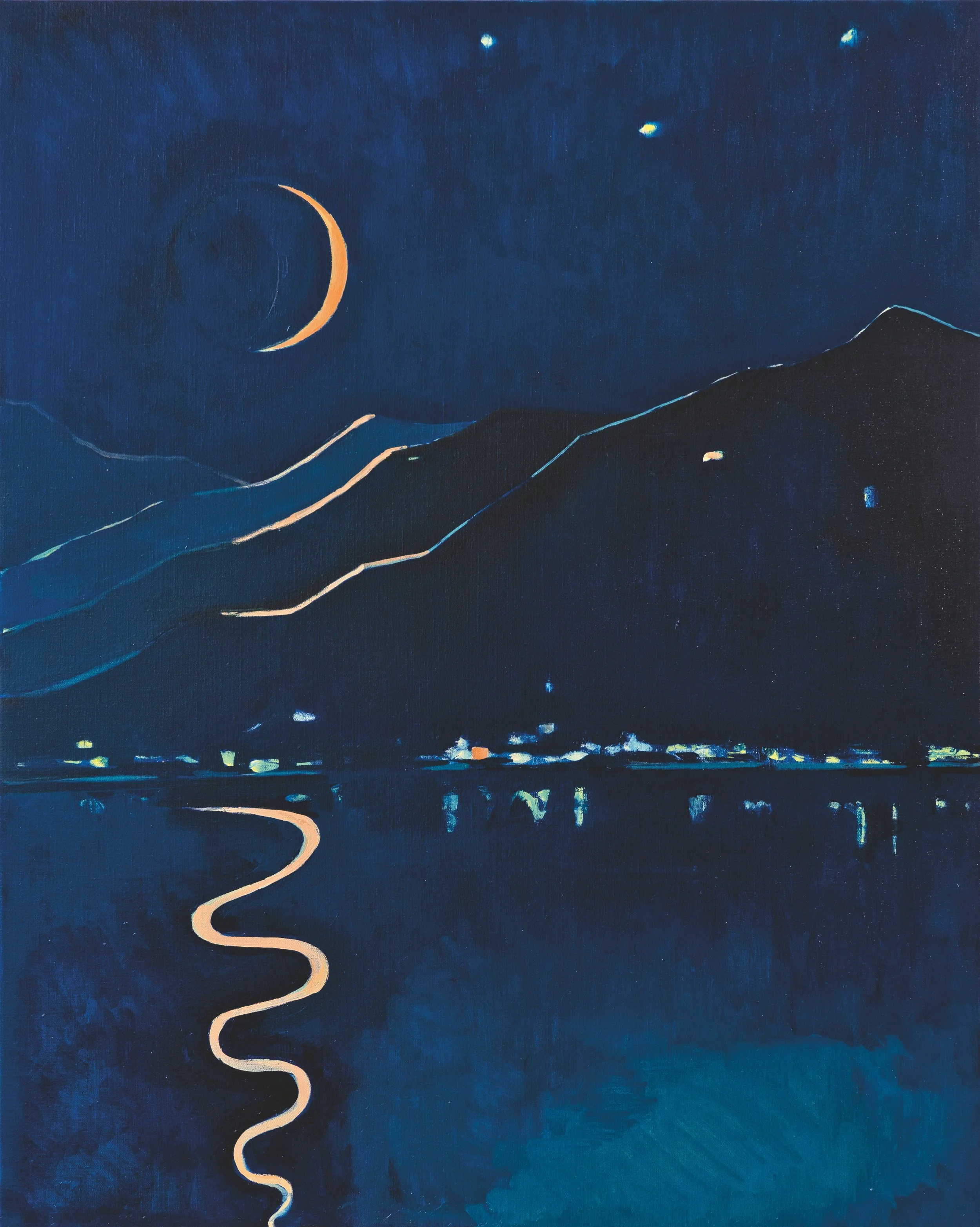The artist sees this exhibition as a meditation on the many writers, artists and musicians who have found inspiration in the waters of Lake Como. “This atmospheric landscape has provided a place of solace and reflection that has attracted Romantic writers such as Percy and Mary Shelly and Wordsworth, as well as Longfellow, Mark Twain and Manzoni, not to mention the artists Turner and Ruskin,” says Cadogan, who has made new paintings in response to the writings of Mary Shelley, who spent a summer on the lake with her husband, the poet Percy Shelly. She wrote ‘It surpasses in beauty any other place I have seen with the exception of the islands of Killarney’ and wrote about her walks through the landscape in her Rambles in Germany and Italy.